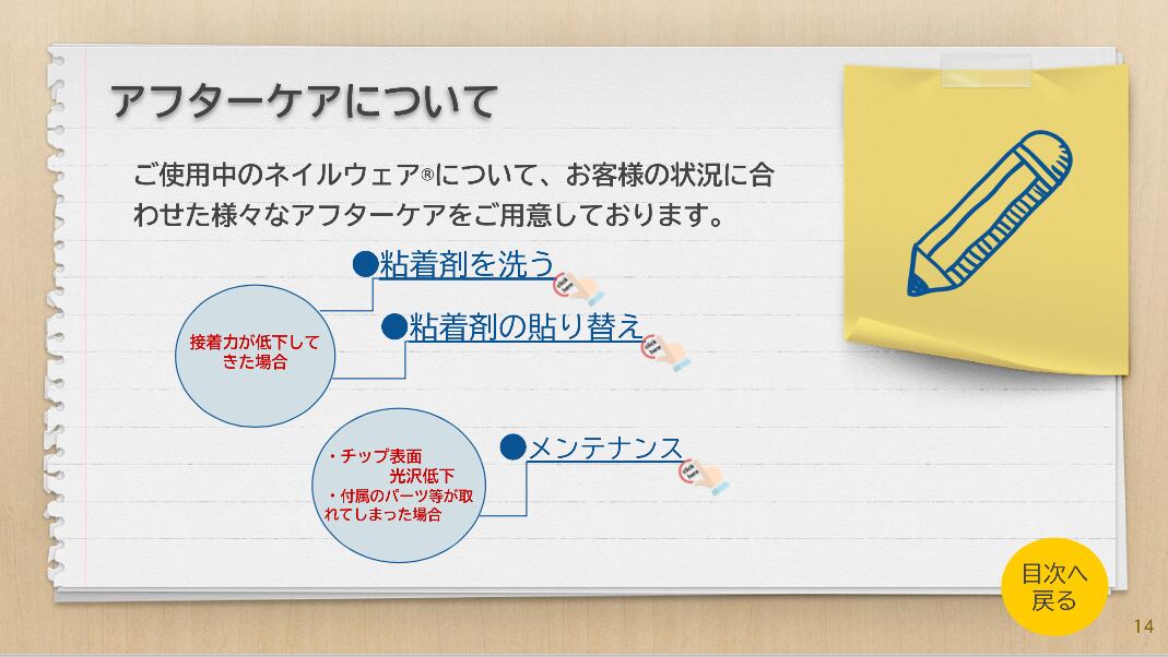ジュネルは3年半の歳月をかけて独自で開発したJCIコネクターという グミ状の接着材とそれと相性の良い材質で開発したshinチップが あることで何度でも着け外しが できるネイルを実現しております。