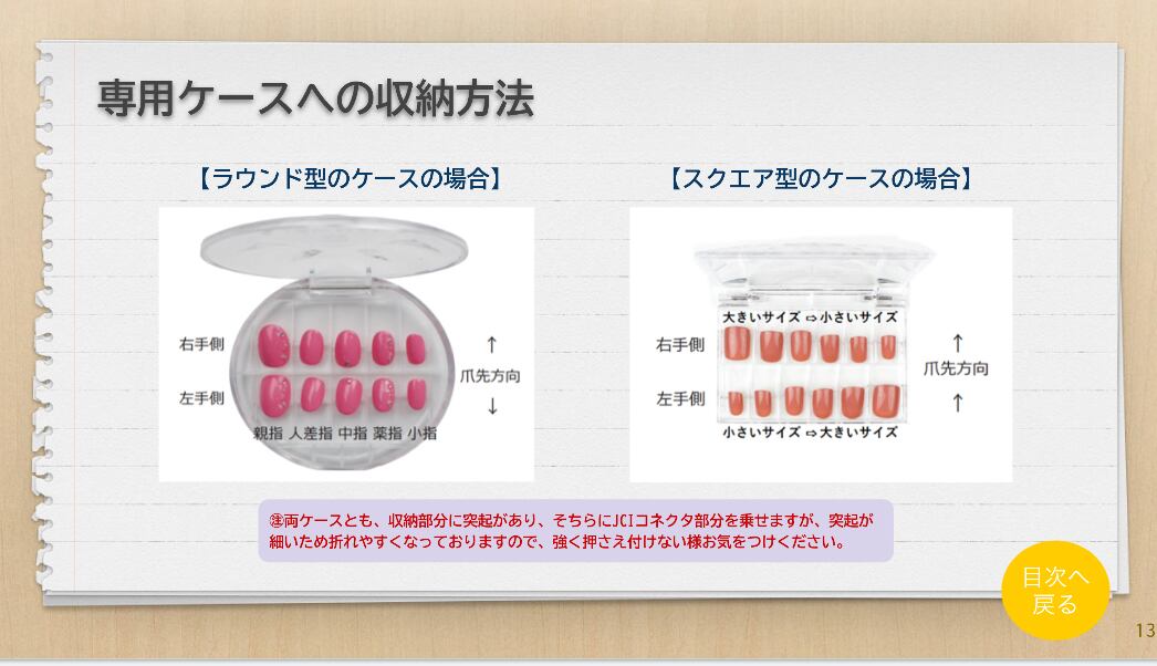 ジュネルは3年半の歳月をかけて独自で開発したJCIコネクターという グミ状の接着材とそれと相性の良い材質で開発したshinチップが あることで何度でも着け外しが できるネイルを実現しております。